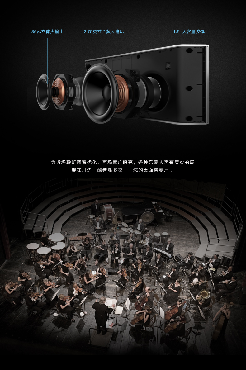 五、喇叭采用优质稀土高强钕铁硼全频喇叭,双磁路设计,25芯KAPTON耐高温线圈,CONEX耐疲劳支撑系统,高顺性窄边橡胶边,添加碳纤维音盆。收音部分一对Φ70中低音喇叭连通密封音箱腔体和低音导音管;数码部分外加一对Φ40高音喇叭。